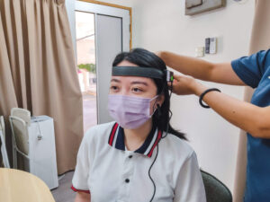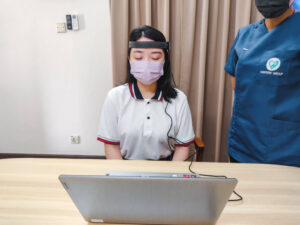 The trainee may be asked to watch images/video, listen to sound waves or play games