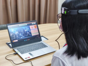 Sensors are placed on the scalp of the trainee to monitor and measure brain activity